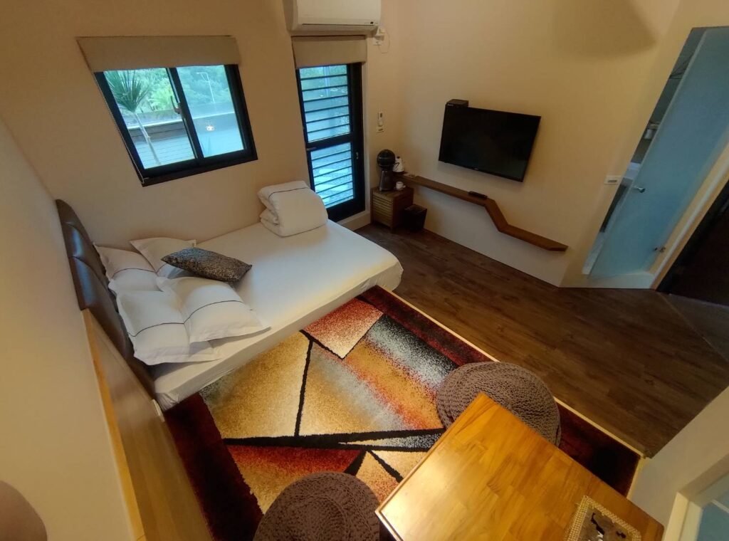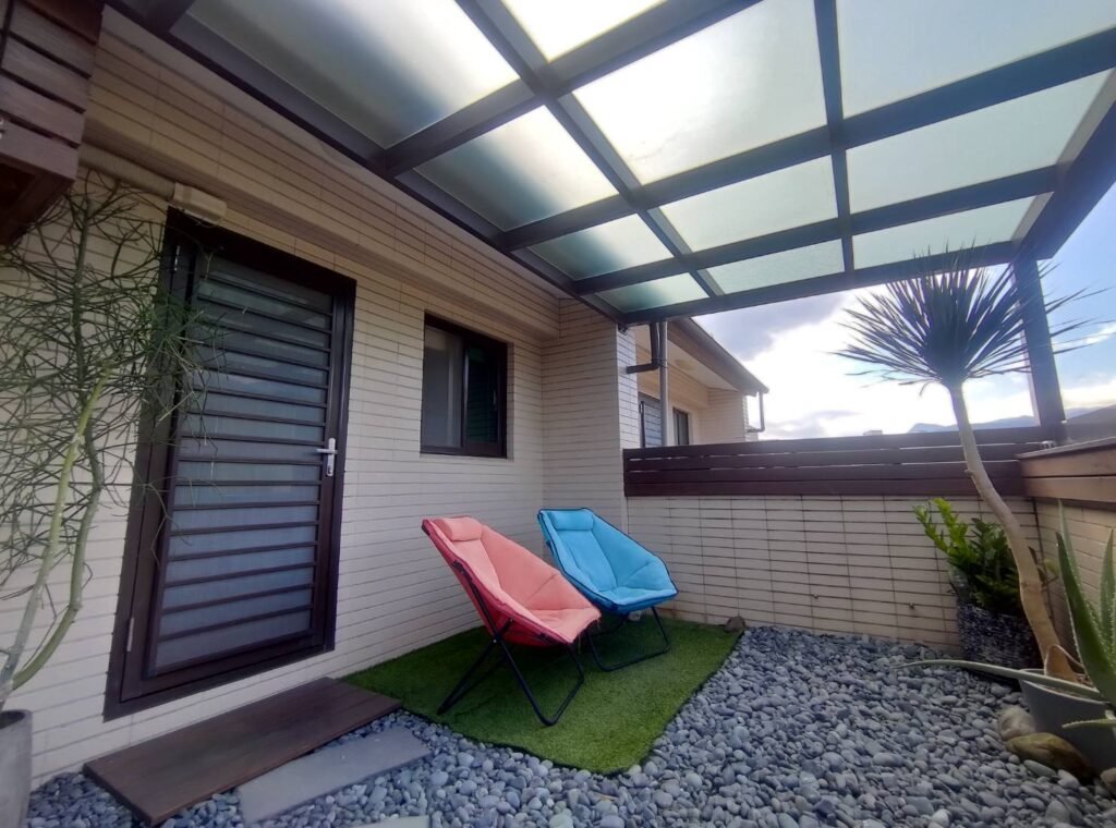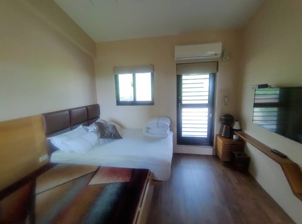 榻榻米式房型,早晨時可在前院遠眺龜山島駐立在太平洋和幾艘漁船相伴,日出陽光微微照射進房間,獨立的後花園露臺可欣賞蘭博融合海蝕平台的造型,細數著濱海公路的車輛,目送火車載著旅人快送通過眼前的景象。具有未來感衛星吊扇,名設計師經典創作360度桌扇讓房間涼快舒適,充滿異國風味的立燈,印尼藤編鏡置於蠶絲玻璃桌上,相對呼應出典雅與精緻泰國精緻錫盒,用於放客戶使用的茶包以及咖啡包.泡出來的茶咖啡,更有皇家的味道…. 床墊更採用高級席夢思同等級床墊,床單組採用60支紗精緻車工, 40吋液晶電視大大的享受.